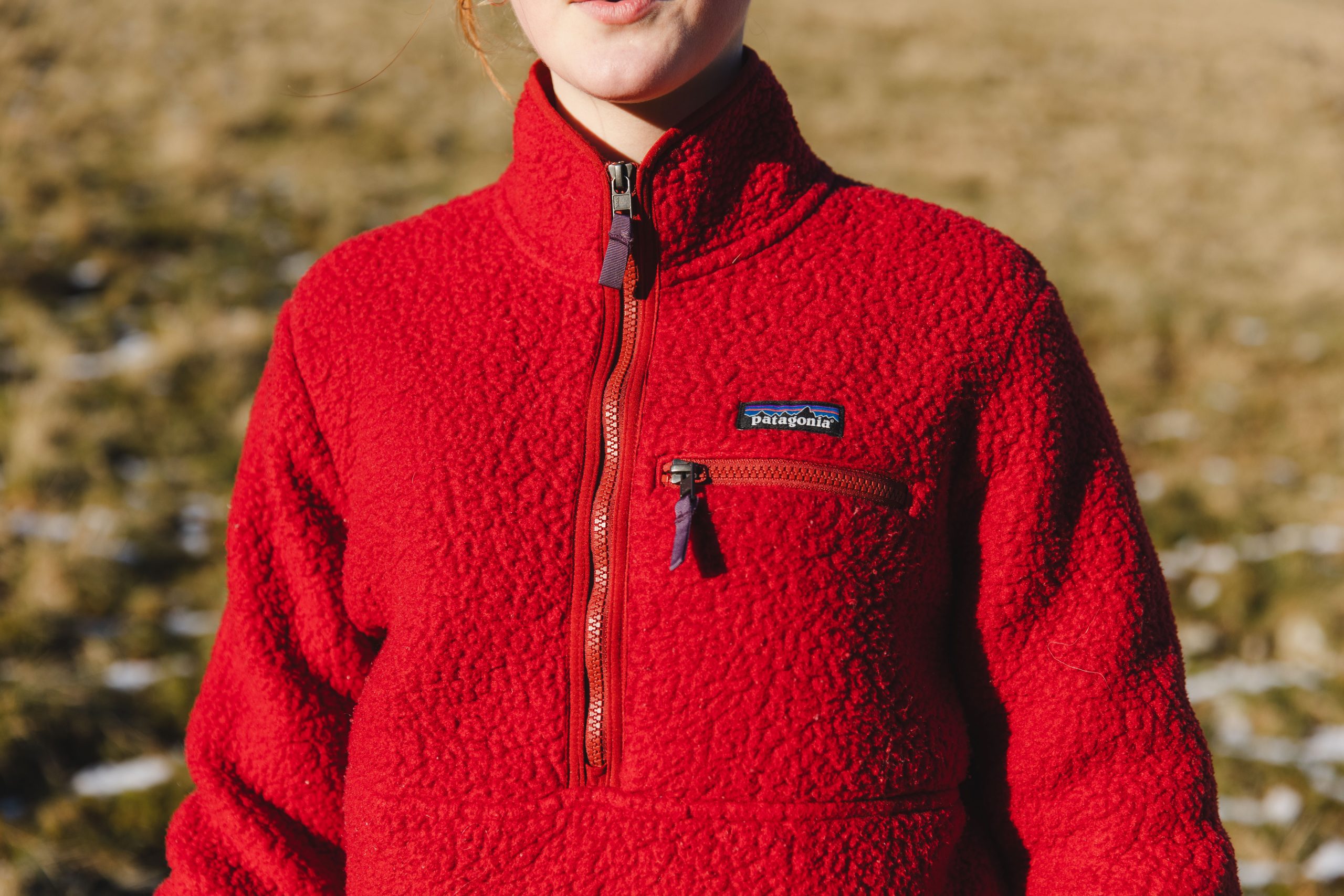 – Patagonia Retro Pile Fleece Jacket in the Lake District red colour way