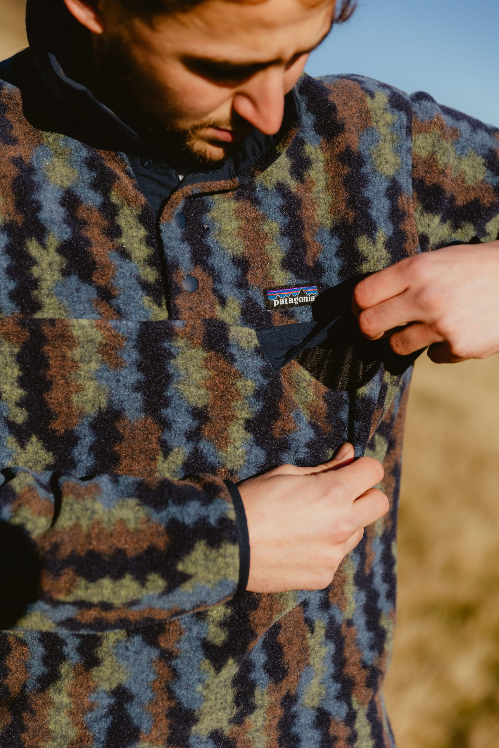 – Patagonia Snap-T Synchilla Fleece in the autumn leaves colourway.
