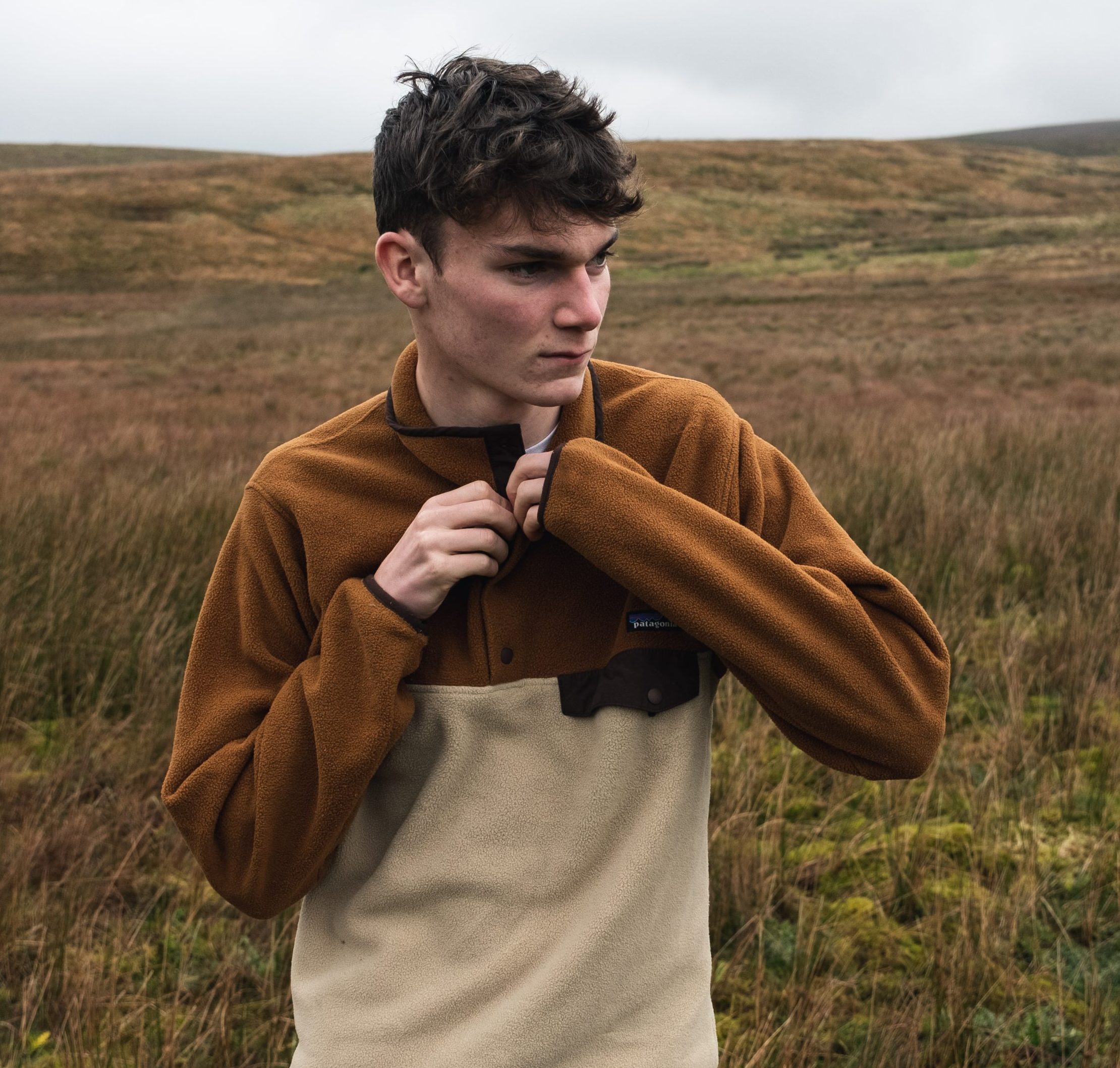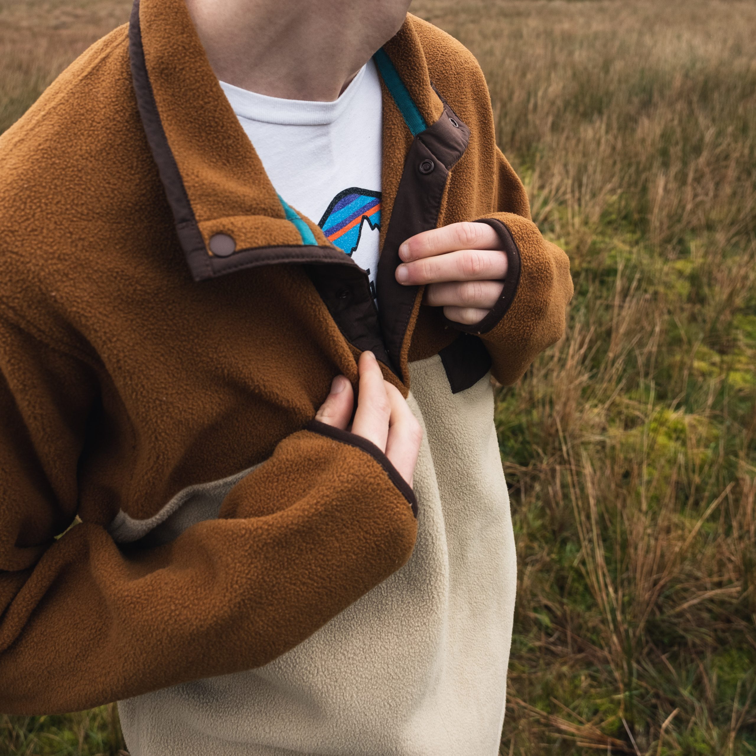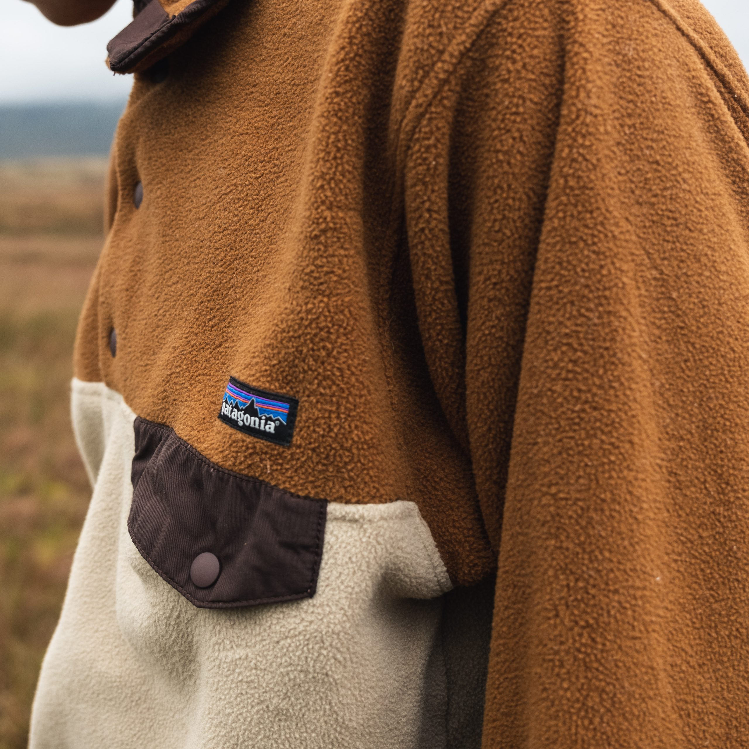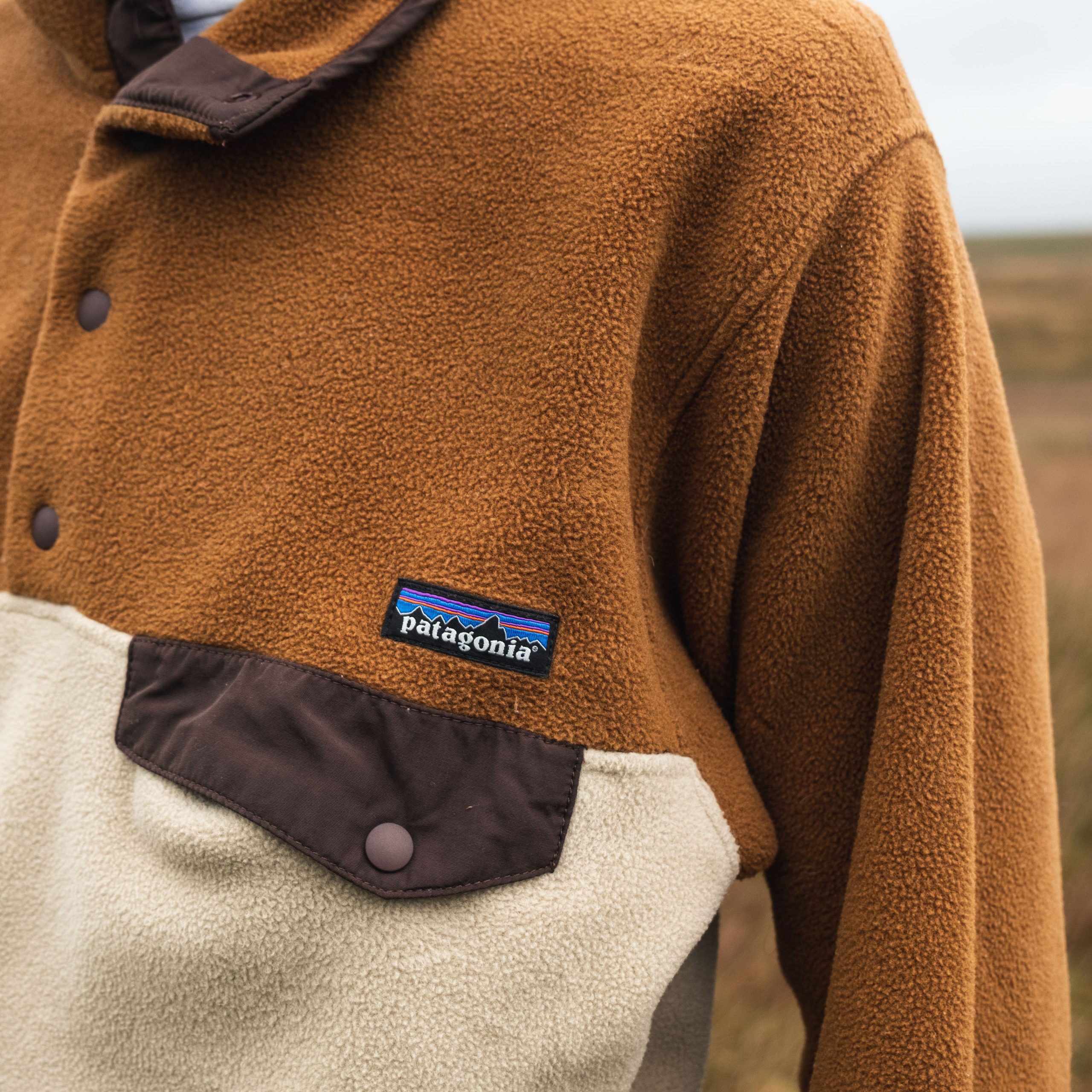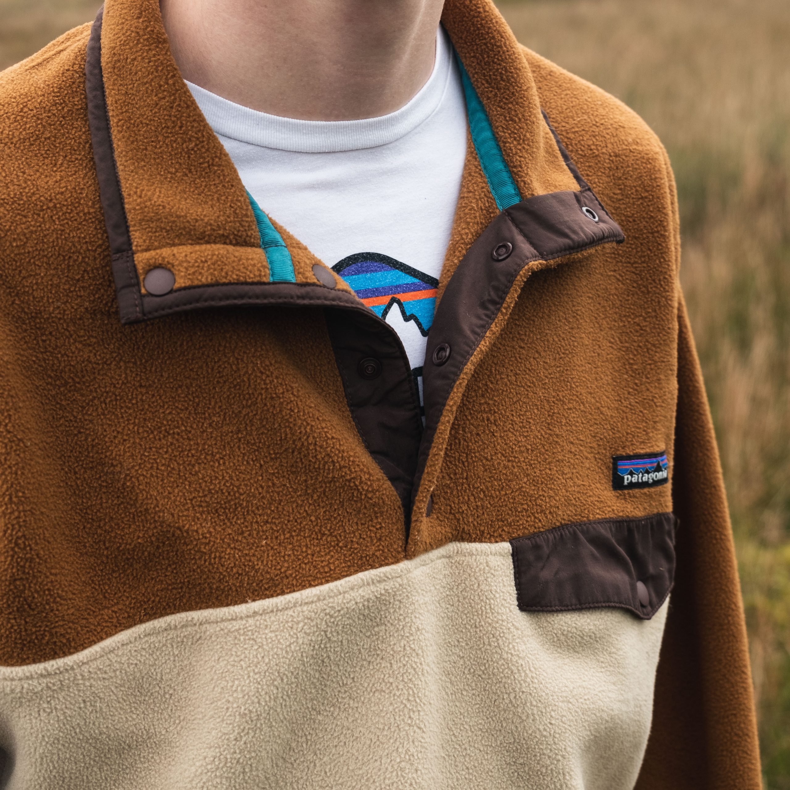 – Patagonia snap-t synchilla fleece in the elk and autumn leaves two-tone colourway