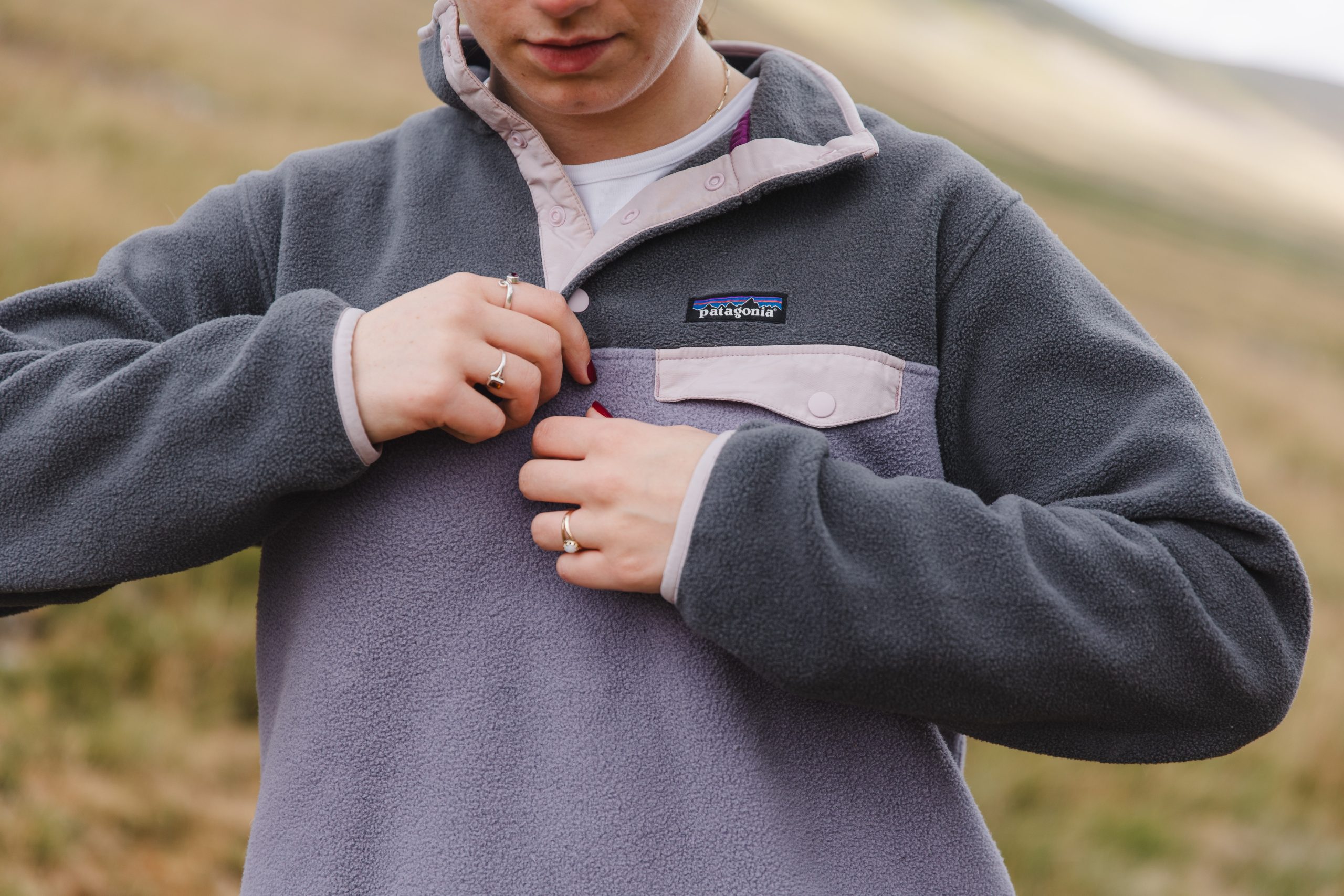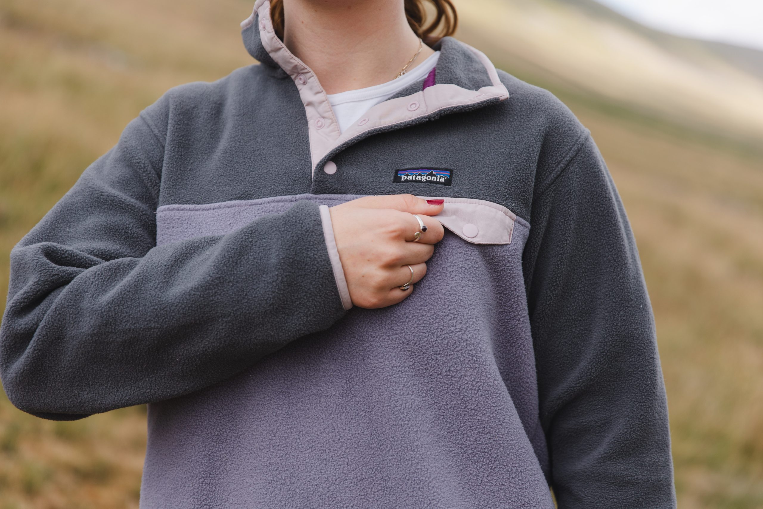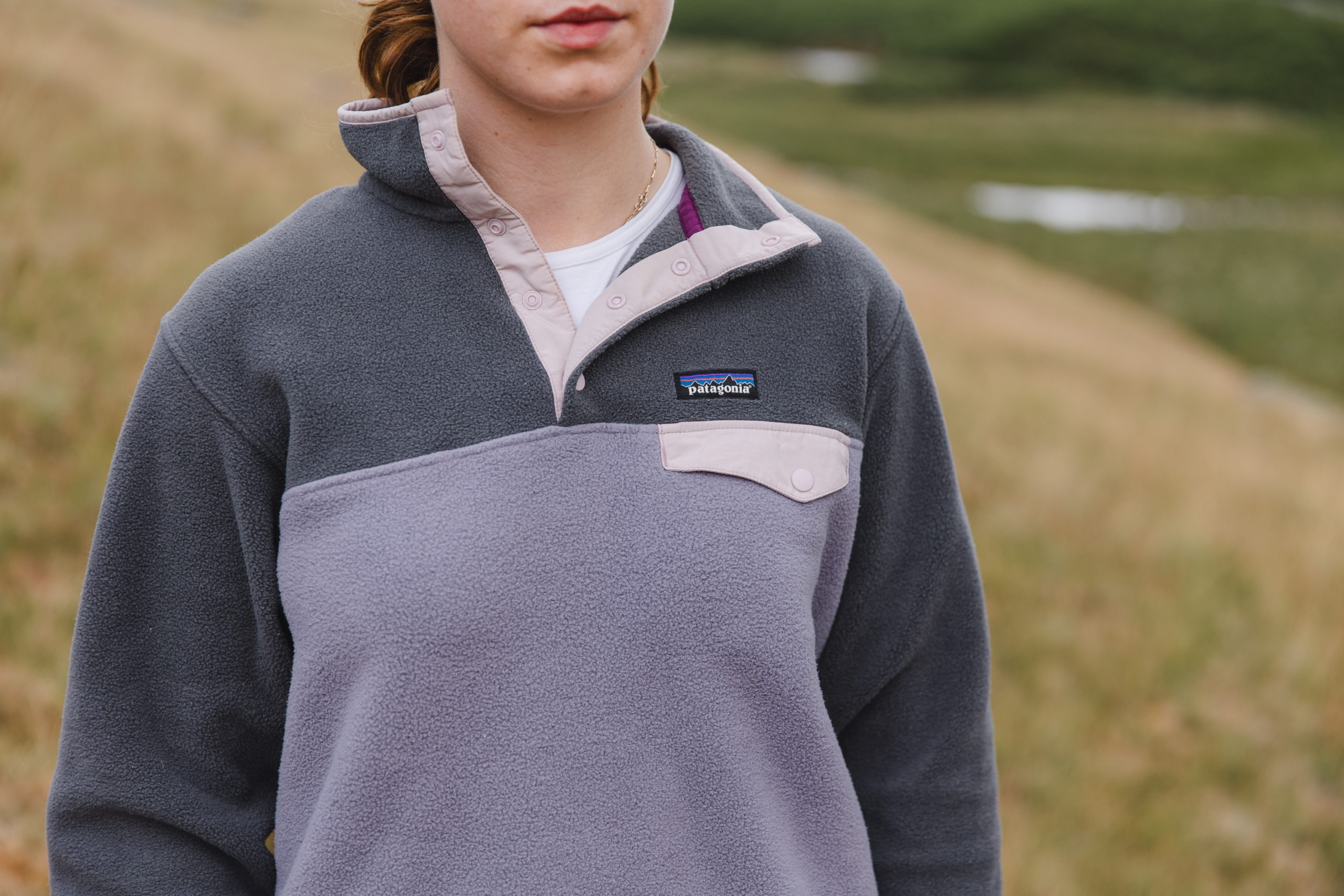 – Patagonia Snap-T Synchilla Fleece in the lilac and salmon pink colourway